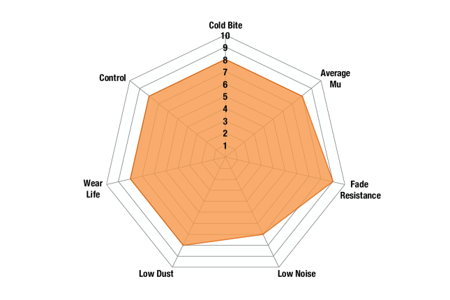 EBC Orangestuff Pad is a brand new race pad and is specially designed for track only use. The deep 'V' grooves in the pad are used to catch dirt, debris and dust as well as aiding with venting. The Orangestuff Pad uses a interlayer system which ensures a much stronger bond in the compound for increased strength for racing harsh conditions. This will allow for 3 times the strength against the normal road use organic pad. Orangestuff pads are pre-scorched which means that are already bedded in compared to the ordinary pad but we advise that a minimal bedding procedure is done to marry the pad to the disc. Two laps at intermediate speed is advised, followed by a further two using heavier braking. These will not be R90 tested for road use and are only manufactured for racing and track use.