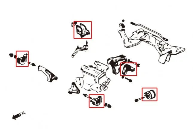 Reinforced engine mount made by hardness rubber create more strength than OE rubber mounts, reduce engine move significantly, and provide the maximum output under engine acceleration. . Offers a more direct connection between the Drive-train and Chassis . Increasing the life span . Helps to put power down to the wheels . Direct bolt-on with OEM components .Increased stability during cornering and acceleration