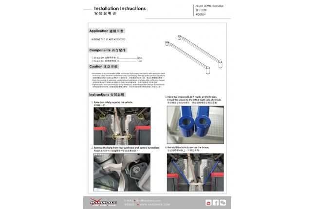 HARDRACE Rear Lower Brace are designed to stiffen up the chassis and reduce vehicle chassis flex. This will increase the rigidity of your car during high speed driving and hard cornering. This is why HARDRACE Rear Lower Brace can maximizes the performance of the suspension and brings better handling feeling and quicker response. . Tubular design to help reduce weight . Reduce the chassis flex . Increase the rigidity
