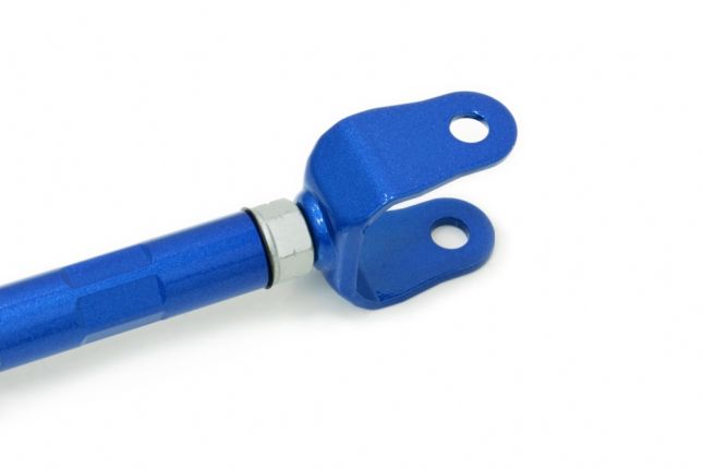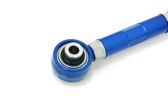 The toe kit allows fine adjustments to the rear end toe in/out setting of the vehicle. It can either help achieve desired handling characteristic or get back to original alignment specs after lowering. The arms are made of high-strength steel alloys to offer high durability and strength. The premium quality pillow ball bushings equipped also provide more precise and solid handling response over the factory components.