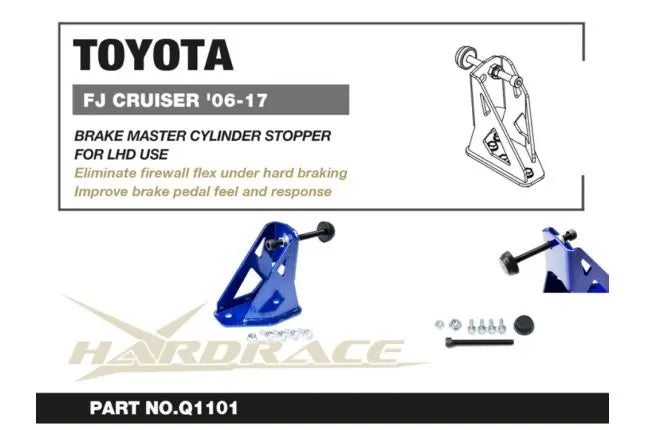 Hardrace teatab uhkusega FJ CRUISERile mõeldud piduri peasilindri stopperi lisamisest. See vähendab tulemüüri läbipainet tugeva pidurdamise ajal, muutes piduripedaali jäigemaks ja tundlikumaks.