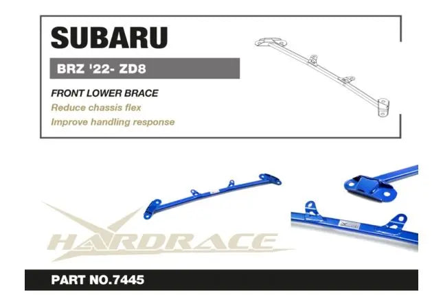 HARDRACE teatab uhkusega uuest esiosa alumisest tugivarda lisamisest mudelitele 86 ja BRZ. See vähendab šassii paindumist ja läbipaindumist, suurendades auto jäikust suurel kiirusel ja järskudel kurvides, mille tulemuseks on parem ja kiirem juhitavus.