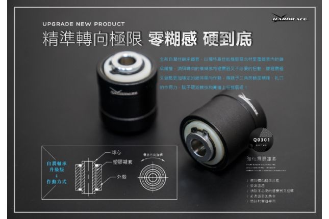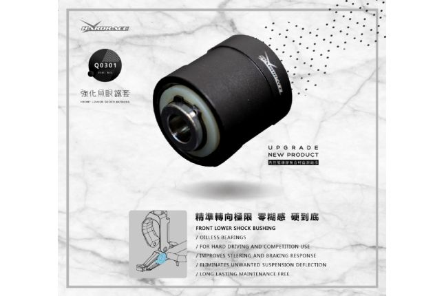 HARDRACE'i esiamortisaatori alumine puks kõrvaldab tõhusalt sellised probleemid nagu lohakas roolimine ja soovimatud vedrustuse läbipainded. Sisemine puks on valmistatud täpselt nii kõrgmolekulaarsest plasttorust kui ka õlivabadest laagritest. See parandab oluliselt teiste vedrustuse modifikatsioonide toimivust, pakkudes kindlalt täpset teljepunkti.