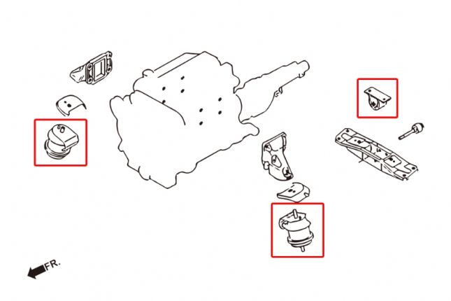Tugevdatud mootorikinnitus, mis on valmistatud kõvast kummist, on vastupidavam kui originaalmootorikinnitus, vähendab oluliselt mootori liikumist ja tagab maksimaalse võimsuse mootori kiirendamisel.