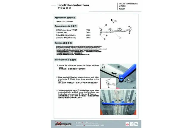 Hardrace - keskmine ja alumine tugivarras Mazda CX-3