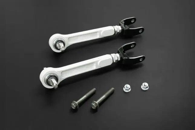 Reguleeritavad hoovad võimaldavad sõiduki tagaosa joondust täpselt reguleerida. See aitab saavutada soovitud juhitavust või taastada auto algse joonduse pärast langetamist. Hoiad on valmistatud anodeeritud CNC-toorikust alumiiniumisulamist, et pakkuda suurimat vastupidavust ja tugevust. Varustatud kvaliteetsed padjakuulpuksid tagavad ka täpsema ja kindlama juhitavuse võrreldes tehasekomponentidega.