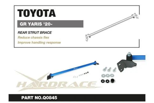 Hardrace teatab uhkusega GR Yarise tagumise vedrustuse tugivarda lisamisest. Tugivarda tugivarda on valmistatud alumiiniumsulamist kesklatist, mis tagab äärmiselt kerge kaalu ja suurepärase tugevuse. Tugivarraste tornide kokkusidumisega kõrvaldab tugivarras kere külgmised läbipainded ja säilitab õige vedrustuse geomeetria suurel kiirusel ja järskudel kurvides, pakkudes täpsemat ja sujuvamat juhitavust.