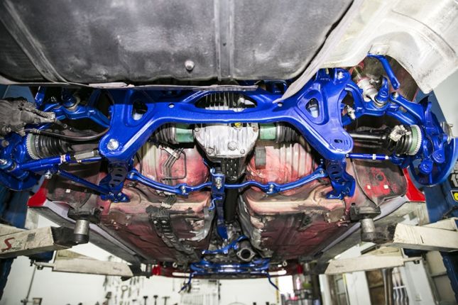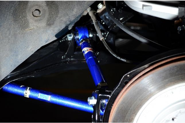 Varraste tugivarraste abil saab sõiduki tagumise kokkujooksu sisse-/väljapoole kallet peenhäälestada. See aitab suurendada sirgjoonelist stabiilsust ja teekontrolli. Varraste tugivarras on valmistatud ülitugevast terasulamist, et pakkuda vastupidavust ja tugevust, kuid samas kerget kaalu.