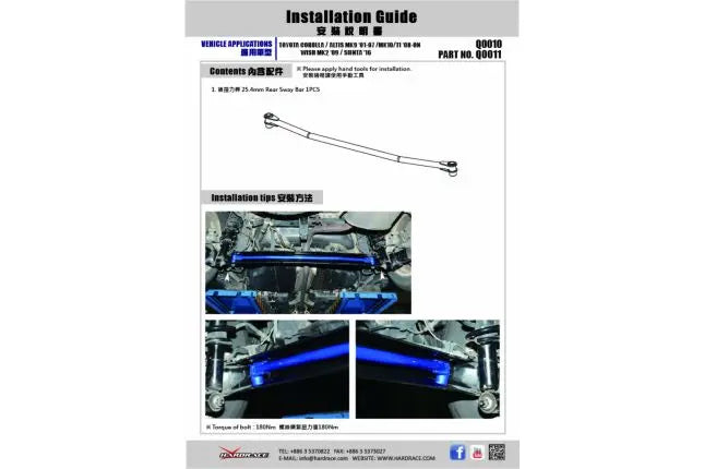 Unikaalsest suure tihedusega terasest valmistatud Hardrace torsioonvardad on loodud šassii jäigastamiseks ja šassii painduvuse vähendamiseks. See suurendab teie auto jäikust suurel kiirusel sõites ja järskudel kurvides. Annab parema juhitavuse ja kiirema reaktsiooni. . Loodud otse originaalvaruosade asendamiseks. Õõnes sisemine konstruktsioon. Kuumtöödeldud. Ala- või ülejuhitavuse korrigeerimine. Parem haarduvus ja juhitavus. Suurem stabiilsus suurel kiirusel kurvides.