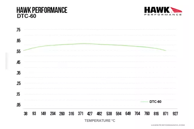 Hawk DTC-60 võidusõidupiduriklotside temperatuurivahemik on sama kui Hawki DTC-70-l, kuid need tekitavad väiksema pidurdusmomendi. Paljud kergemate ja väiksemate autode võidusõitjad kasutavad sageli ees DTC-60 ja taga DTC-30 klotse, samas kui suurematel, raskematel ja suure jõudlusega autodel kasutatakse DTC-60 sagedamini taga ja DTC-70 ees. Töötemperatuurid: 205–870 °C Optimaalne temperatuurivahemik: 370–595 °C