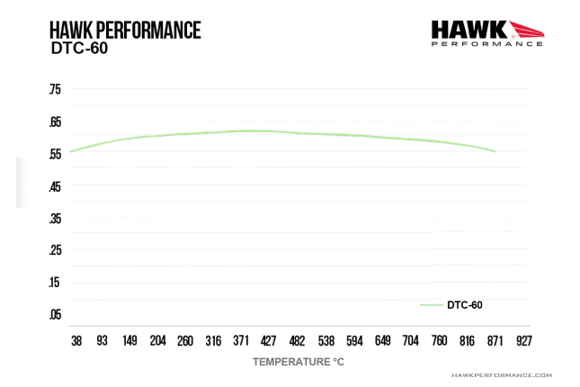 Hawk DTC-60 võidusõidupiduriklotside temperatuurivahemik on sama kui Hawki DTC-70-l, kuid need tekitavad väiksema pidurdusmomendi. Paljud kergemate ja väiksemate autode võidusõitjad kasutavad sageli ees DTC-60 ja taga DTC-30 klotse, samas kui suurematel, raskematel ja suure jõudlusega autodel kasutatakse DTC-60 sagedamini taga ja DTC-70 ees. Töötemperatuurid: 205–870 °C Optimaalne temperatuurivahemik: 370–595 °C