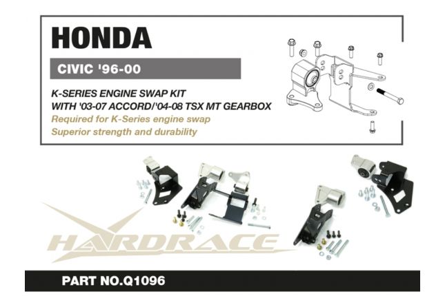 Hardrace - K-seeria vahetusmootori kinnituskomplekt Honda Civicule